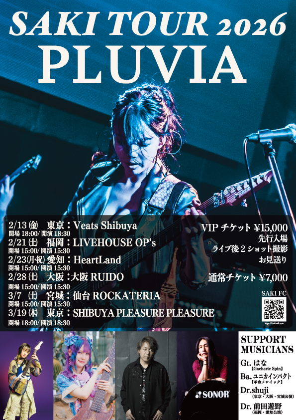 2026.03.19(thu) 東京 SHIBUYA PLEASURE PLEASURE<SAKI TOUR 2026 PLUVIA>に、はながギターで参加