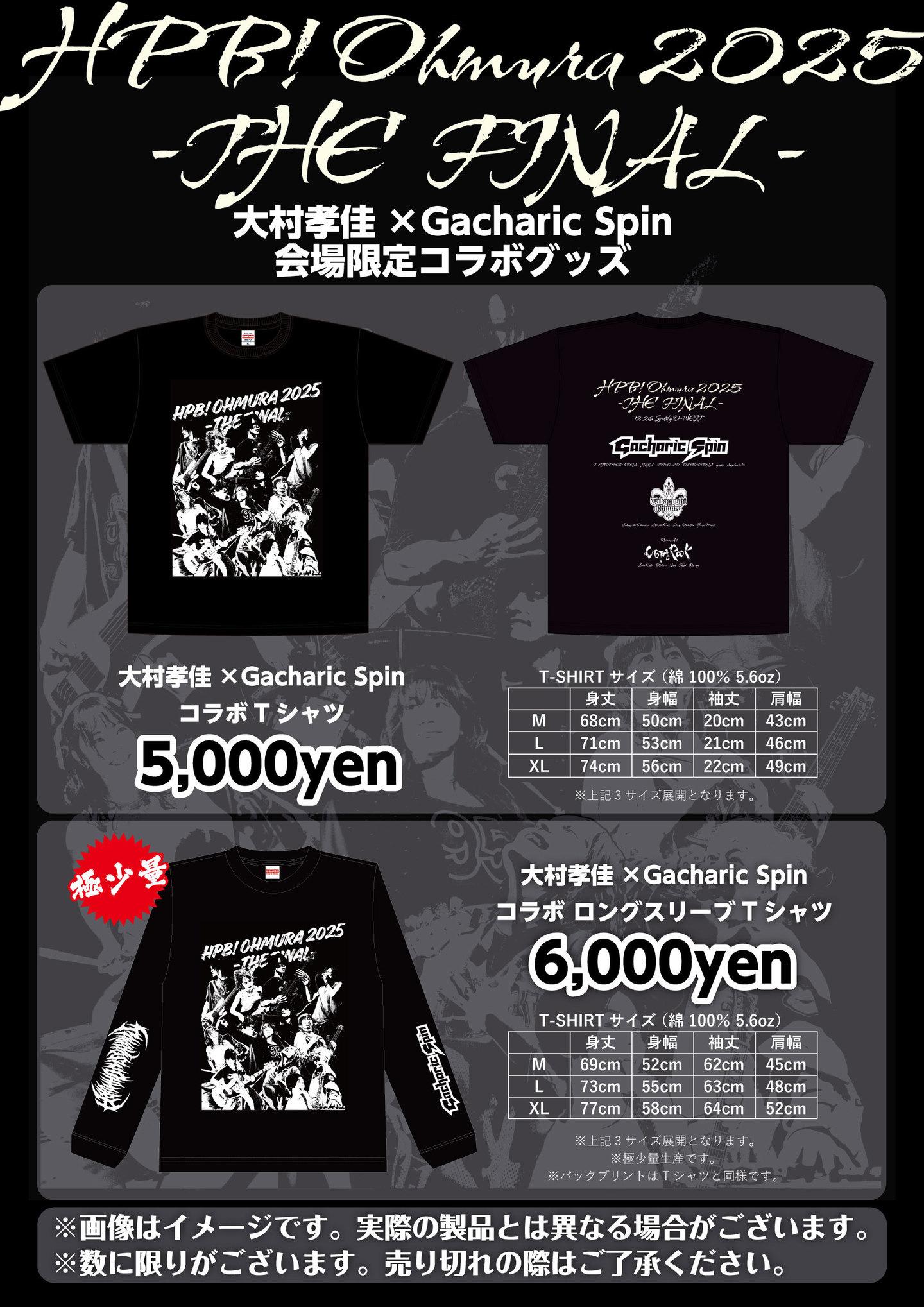 ・大村孝佳×Gacharic Spin コラボロングスリーブTシャツ(M、L、XL) 6,000円
